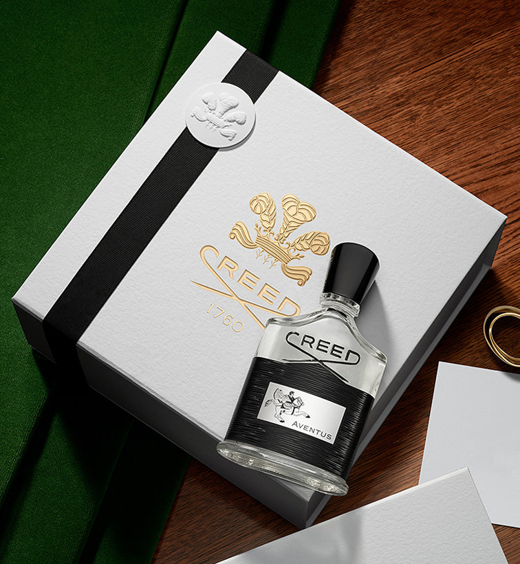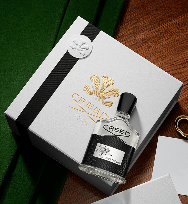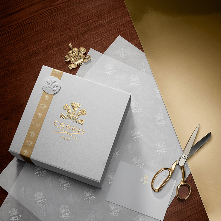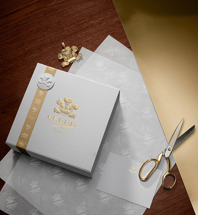 Elevate your fragrance with Creed’s signature packaging: an elegant final flourish available on select orders.