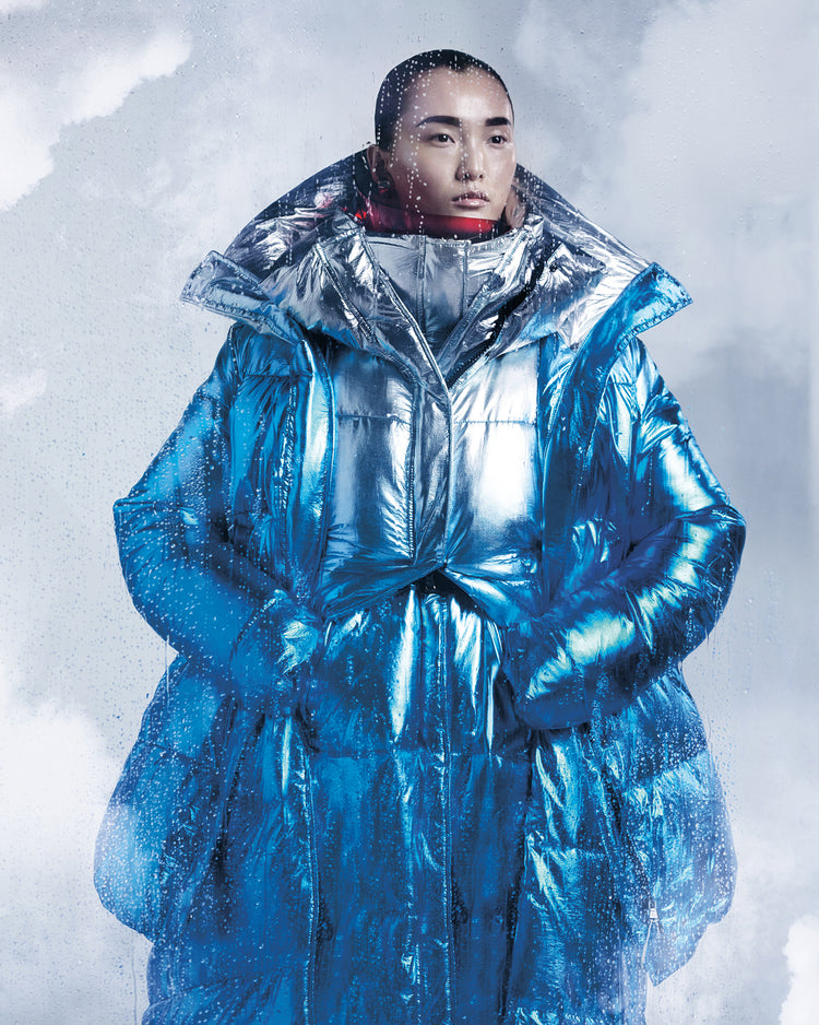 Alpine streams descending over frosted rock face, whilst retaining the comfort of a warm and plush jacket.